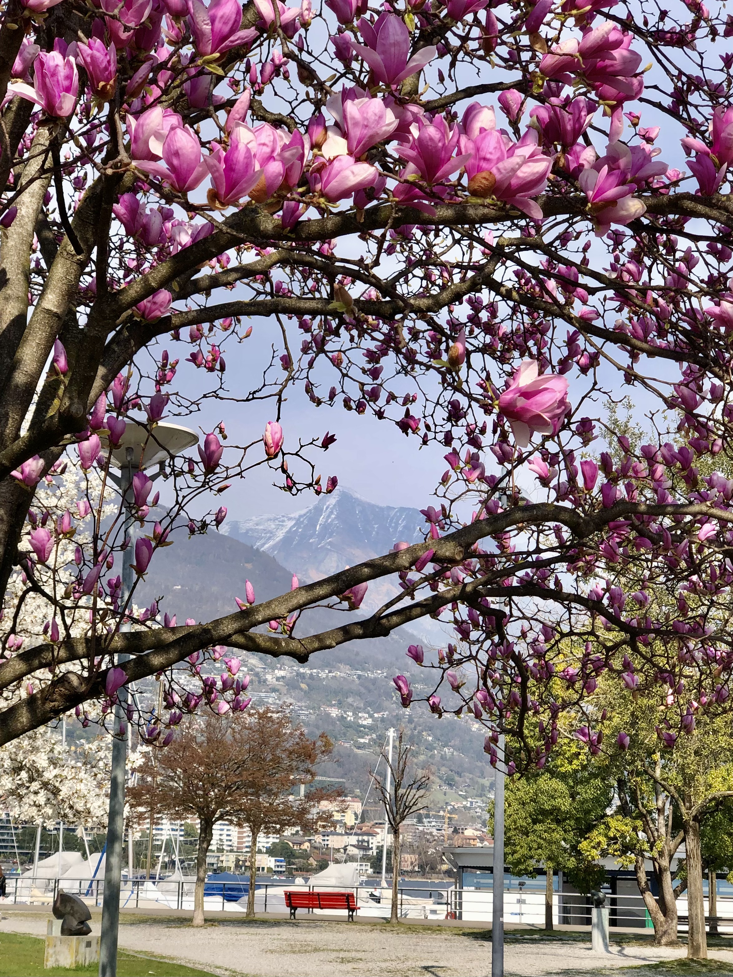 The pleasant Mediterranean climate makes this southern part of Switzerland very attractive all year round, and especially in spring, when the exotic flowers and trees like a magnolias, Japanese cherry, or camellias bloom!